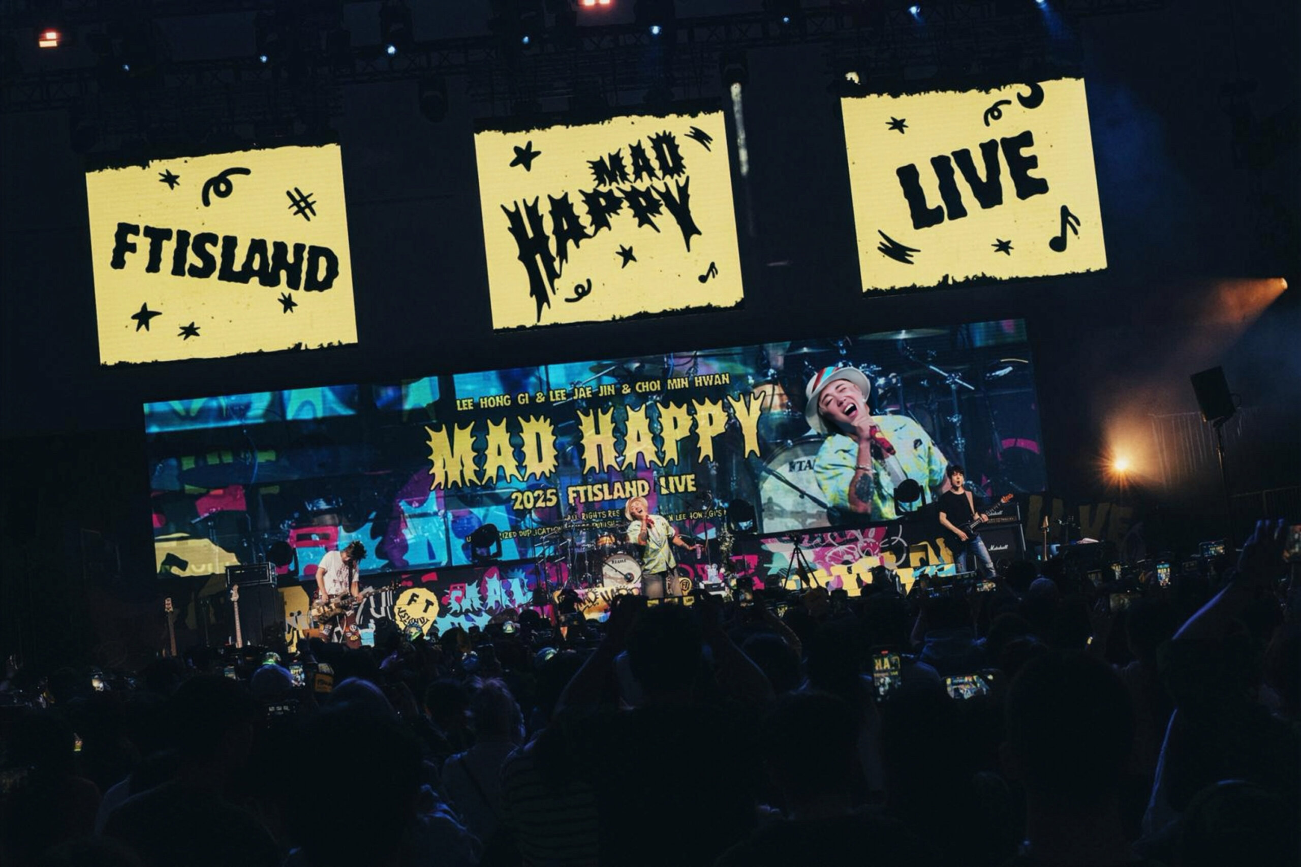 韓國「經典搖滾男團」FTISLAND於2025年11月22日,假AXA安盛創夢館西沙GO PARK,由光尚娛樂主辦的《2025 FTISLAND LIVE ‘MAD HAPPY’ IN HONG KONG》演唱會圓滿落幕。香港作為FTISLAND此次亞洲巡迴的尾站,主唱李洪基帶領貝斯手李在真及鼓手崔敏煥,以搖滾歌曲《Be Free》震撼開場,隨即一氣呵成連唱《Let it go!》、《Flower Rock》、《Time To》等多首經典。李洪基高呼「Are you ready HongKong?」瞬間點燃全場,引領「PRIMADONNA」(粉絲名稱)陷入瘋狂,展開一整晚的跳唱派對!攝/Echo